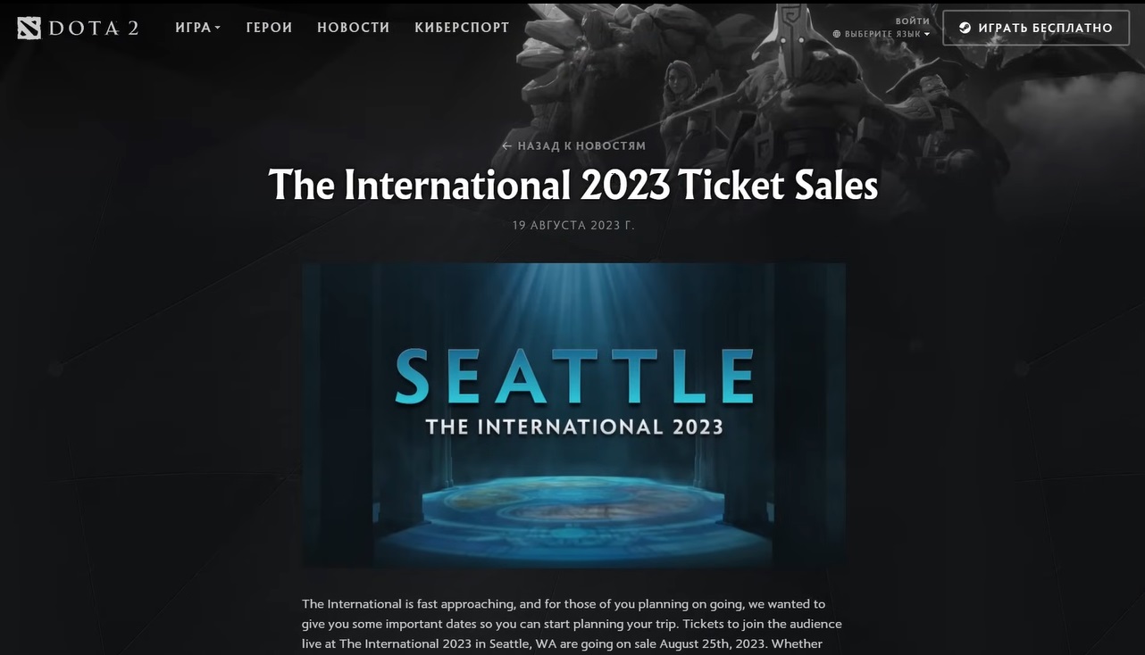 Новость связанная с The International 2023 Ticket Sales